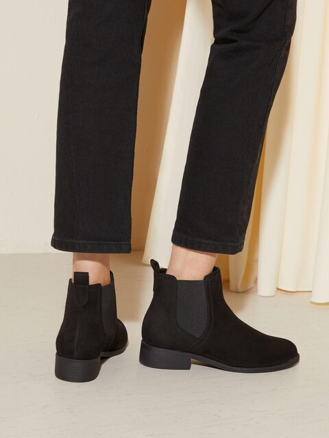 Friends Like These Black Faux Suede Wide Fit Flat Ankle Chelsea Boot