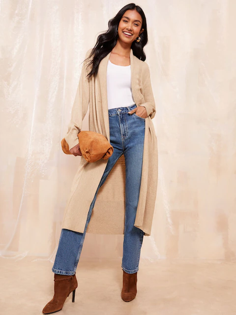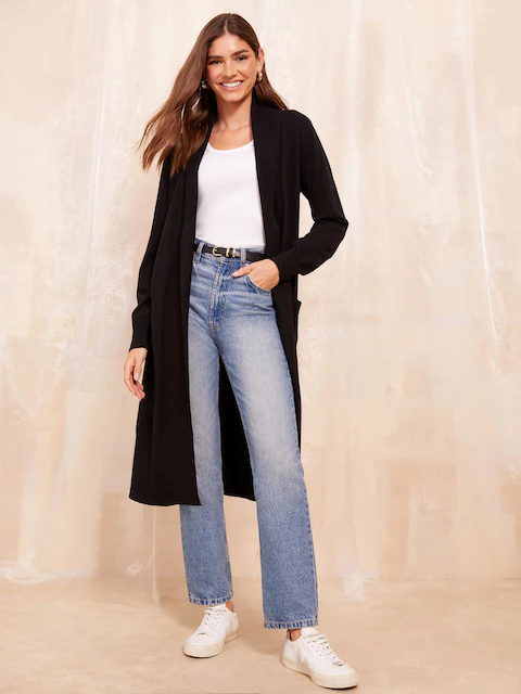 - The Cashmere Longline Cardigan – For ultimate luxury, this cashmere version features side slits and a sweeping silhouette.