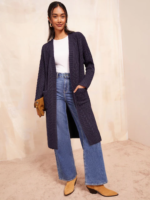 - The Waffle Knit Cardigan – Ribbed waffle texture and pockets make this a longline standout.