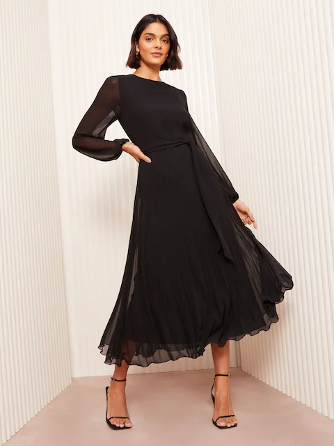- Our gorgeous chiffon long sleeve pleated midi dress is perfect for any event or special occasion, however it can also be dressed down for a more casual day look!
