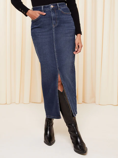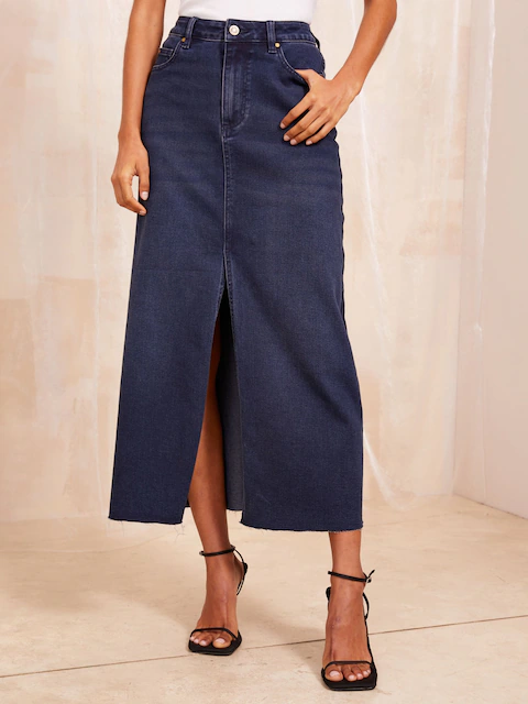 Friends Like These Indigo Blue Denim Split Front Midaxi Skirt