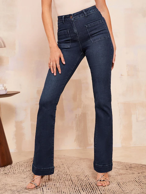 Friends Like These Inky Blue High Waist Pocket Flare Jeans