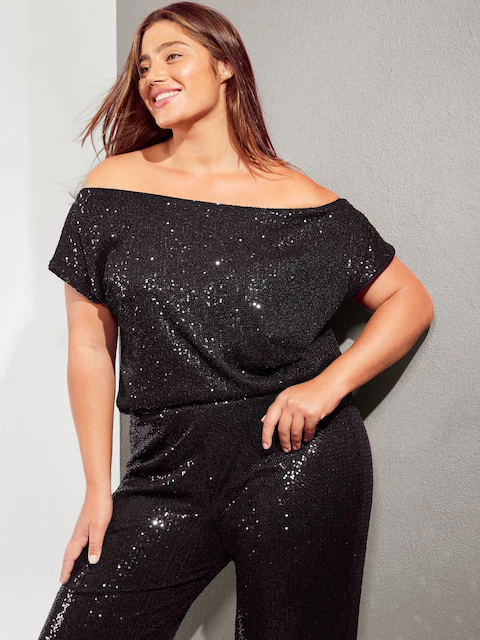 • This beautiful off the shoulder sequin top is perfect for the party season! Pair with our matching sequin trousers for the ultimate stylish party look!